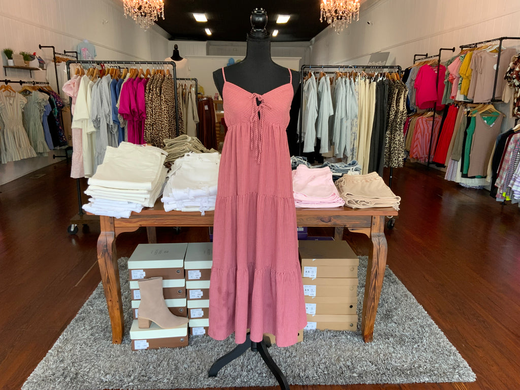 Blu Pepper Striped Front Tie Cut Out Tiered Midi Sundress